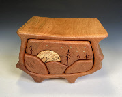 Moon Over the Mountain 1 drawer push- with secret compartment Walnut, ash,brass 6"L x 5”W x 5.5”H order number W- $225 |
