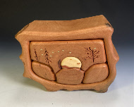Moon Over the Mountain 2 drawer push- with secret compartment Ash, hackberry 9.5"L x 5"W x 75.5”H order number 2AshM- $425 |