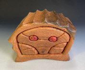 “Baba Yaga Box” 2 drawer push- with secret compartment Cherry, walnut,hackberry,osage orange, etc. 9”L x 6”W x 11” (12.5”) H order number ChBY- $425 SOLD |